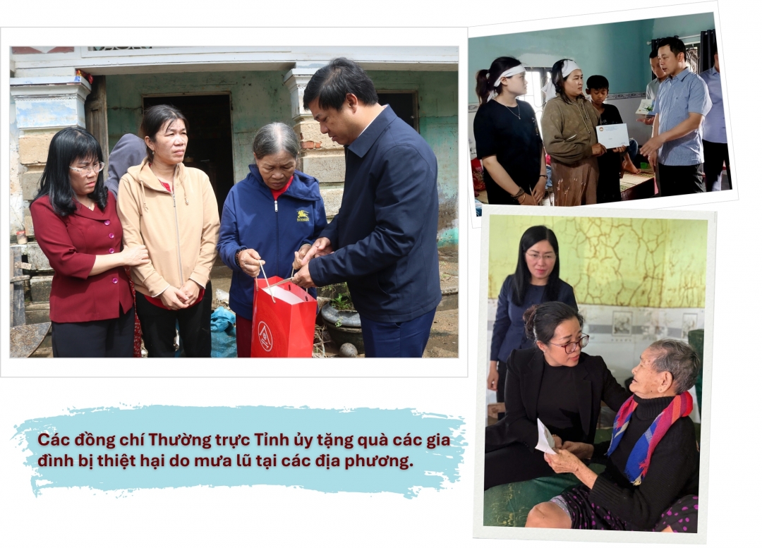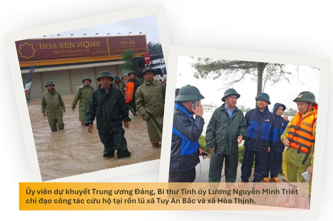 Trong những ngày nước lũ dâng cuồn cuộn, nhiều tuyến đường bị chia cắt, các đồng chí lãnh đạo tỉnh Đắk Lắk đã không quản hiểm nguy để có mặt sớm nhất tại hiện trường. Trưa 19/11, Ủy viên dự khuyết Trung ương Đảng, Bí thư Tỉnh ủy Lương Nguyễn Minh Triết cùng đoàn công tác vượt hơn 250 km từ phía Tây đến xã Tuy An Bắc – nơi 20/20 thôn bị ảnh hưởng nặng, hơn 16.000 nhân khẩu chìm trong nước - để chỉ đạo cứu trợ khẩn cấp. Phó Bí thư Thường trực Tỉnh ủy Cao Thị Hòa An cũng kịp thời có mặt tại phường Phú Yên khi nước đang dâng cao, trực tiếp chỉ đạo công tác cứu hộ.