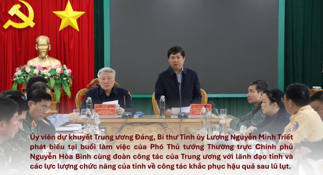 Đợt mưa lũ lần này gây thiệt hại nặng nề hơn tất cả các đợt lũ trong vòng một thế kỷ qua, với các đỉnh lũ đều vượt mốc lịch sử. Từ ngày 19/11 đến nay, Thường trực Tỉnh ủy và các Ủy viên Ban Thường vụ Tỉnh ủy đều có mặt tại các “điểm nóng” để chỉ đạo và kiểm tra tình hình. Giữa tiếng mưa xối xả và dòng nước bạc, hình ảnh các đồng chí lãnh đạo tỉnh lội bùn, đi đến từng điểm ngập, động viên lực lượng cứu hộ, thăm hỏi những gia đình mất mát tài sản, thậm chí mất người thân… đã gây xúc động sâu sắc. Những hành động ấy không chỉ thể hiện trách nhiệm của người đứng đầu mà còn phản ánh tình cảm chân thành, sự sẻ chia từ trái tim đối với nhân dân vùng rốn lũ.