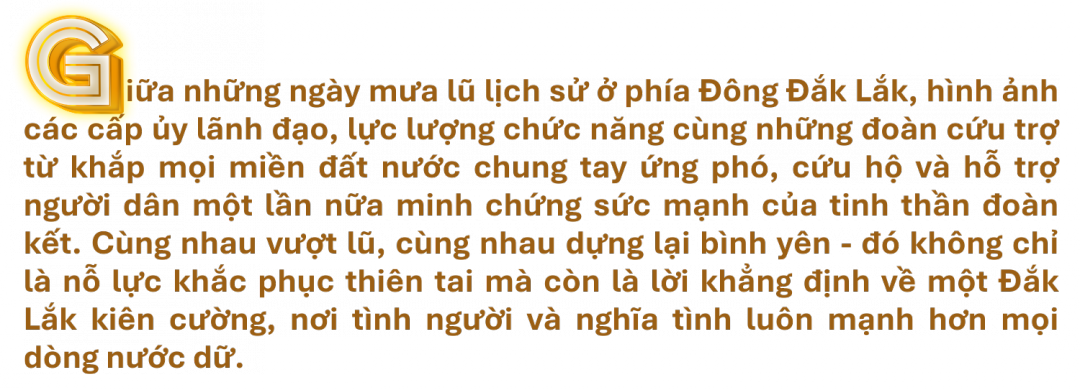 Những ngày mưa lũ lịch sử ở phía Đông Đắk Lắk đã để lại nhiều mất mát, nhưng cũng đồng thời khắc họa rõ nét tinh thần đoàn kết, trách nhiệm và nghĩa tình của cả hệ thống chính trị, lực lượng chức năng và nhân dân cả nước. Từ những chỉ đạo nóng tại tâm lũ, đến những chuyến chi viện kịp thời từ các địa phương, từng hành động, từng món quà đều là minh chứng sống động cho sức mạnh của sự đồng lòng và nghĩa tình.