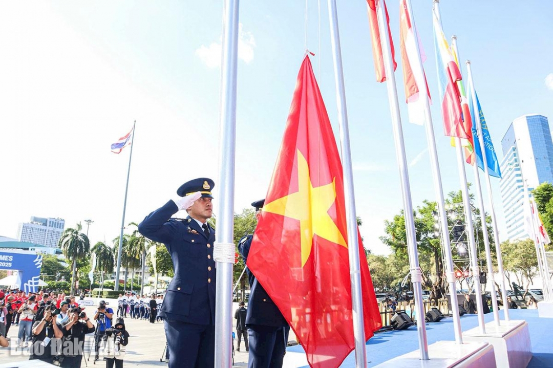 | Lễ thượng cờ các quốc gia dự SEA Games 33 - sân chơi để các nước trong khu vực biểu thị tinh thần đoàn kết. Ảnh: B. Lượng |