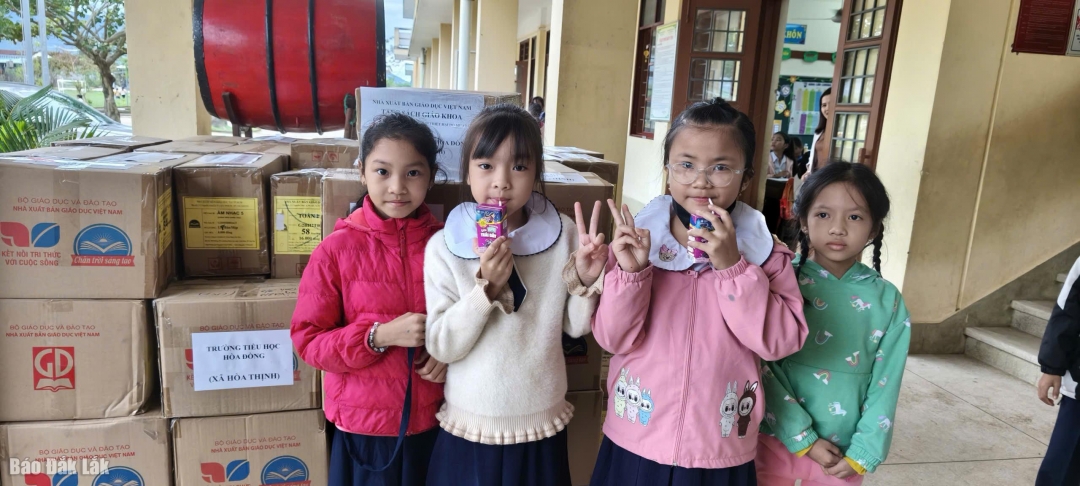 | Buổi trao quà diễn ra trong không khí ấm áp, sẻ chia. Ảnh: Thanh Ngân |