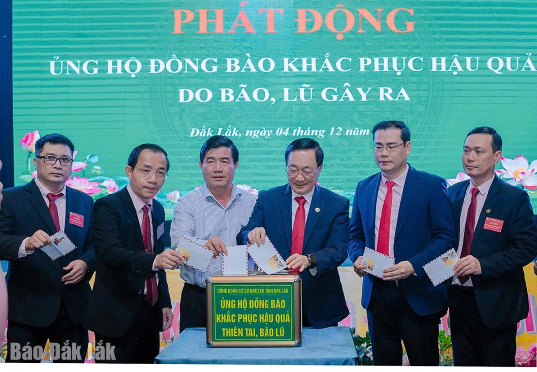 Công đoàn cơ sở NHCSXH tỉnh Đắk Lắk phát động đoàn viên, người lao động trong hệ thống tham gia ủng hộ đồng bào bị ảnh hưởng mưa lũ.