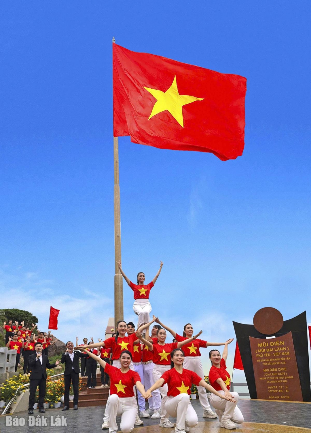 | Biểu diễn văn nghệ chào mừng năm mới tại Mũi Điện (xã Hòa Xuân) - điểm cực đông trên đất liền của Tổ quốc. Ảnh: Ngọc Thắng |