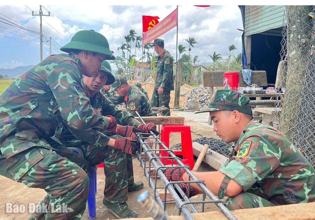 Một tháng trước, khi lũ dữ tràn về, bộ đội đã cùng dân vượt qua những giờ phút sinh tử. Khi nước rút, họ ở lại trên những vùng đất tan hoang, giúp dân khắc phục hậu quả thiên tai. Hàng nghìn cán bộ, chiến sĩ ở Quân khu 5, Bộ Quốc phòng, Vùng 4 Hải quân, Bộ Chỉ huy Quân sự tỉnh, lực lượng công an cùng các địa phương đã bám trụ từng thôn xóm, sửa chữa và xây dựng lại nhà cửa cho người dân vùng thiên tai.