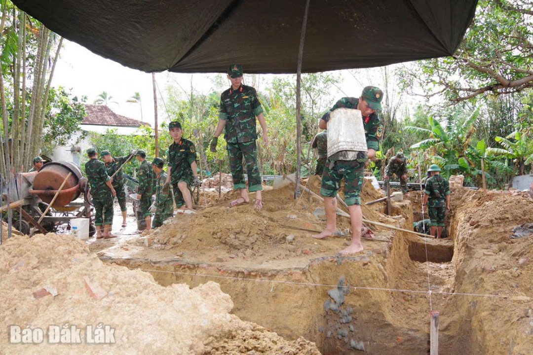 | Sau lũ, cán bộ, chiến sĩ lực lượng vũ trang tỉnh tiếp tục giúp nhân dân xây dựng nhà ở. Ảnh: Tiến Lượng |