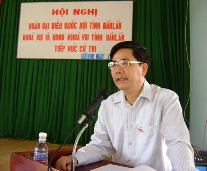 *Các cử tri xã Cư Êbur và phường Thắng Lợi (TP. Buôn Ma Thuột) bày tỏ vui mừng trước thành công của cuộc bầu cử đại biểu Quốc hội khóa XIII và đại biểu HĐND tỉnh khóa VIII, những thành tựu đạt được trong quá trình phát triển kinh tế - xã hội của đất nước, của tỉnh cũng như sự đổi mới trong hoạt động của Quốc hội và những đóng góp của Đoàn đại biểu Quốc hội tỉnh Dak Lak thời gian qua. Đồng thời, cử tri cũng đề đạt nhiều ý kiến kiến nghị đến Quốc hội, Chính phủ và HĐND tỉnh, đó là: đẩy mạnh và thực hiện có hiệu quả công tác chống tham nhũng, lãng phí; quan tâm đào tạo nguồn nhân lực; đầu tư xây dựng kết cấu hạ tầng cơ sở, nhất là hệ thống đường giao thông; công tác quy hoạch đô thị; việc triển khai thực hiện dự án Khu du lịch sinh thái Suối Xanh; có phương án quy hoạch vùng nguyên liệu, tổ chức sản xuất và bảo đảm đầu ra cho các sản phẩm nông sản trên địa bàn; việc tiếp cận với các nguồn vốn vay đầu tư phát triển sản xuất còn nhiều khó khăn, lãi suất cao; giải quyết tình trạng ô nhiễm môi trường; nâng cao hiệu quả khám chữa bệnh; thực hiện tốt hơn các chế độ chính sách cho người nghèo, người có công, đối tượng bảo trợ xã hội; tạo việc làm cho sinh viên mới ra trường; nâng kinh phí hỗ trợ xây dựng nhà theo Chương trình 167 và phụ cấp cho cán bộ xã, phường, thị trấn…