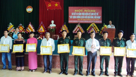 Nhân dịp này UBND tỉnh và Ủy ban MTTQ Việt Nam tỉnh đã tặng Bằng khen cho 17 tập thể, 17 cá nhân có nhiều thành tích trong thực hiện “Xây dựng đường biên giới hòa bình, hữu nghị” 2 năm 2010-2012.