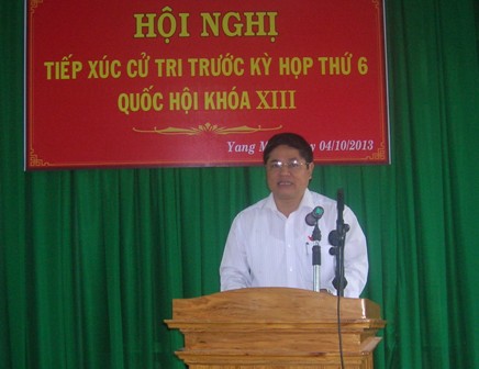 | Các đại biểu tham gia hội nghị và cử tri xã Yang Mao phát biểu ý kiến | |