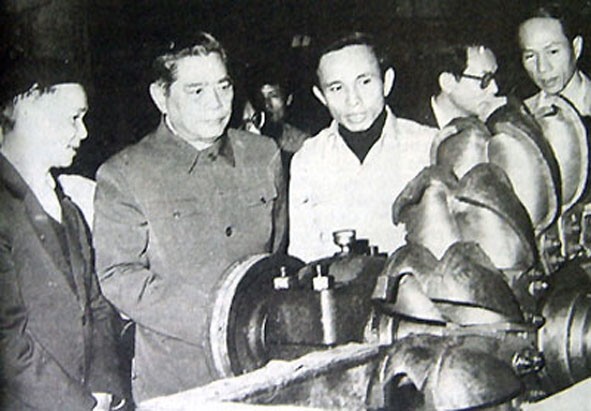 | Đồng chí Nguyễn Văn Linh thăm và làm việc tại Nhà máy công cụ số 1, ngày 3-3-1987. Ảnh: T.L |