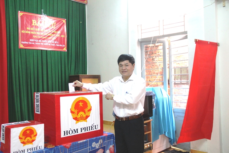 Đúng 6 giờ 30 phút sáng 22-5, tại khu vực bỏ phiếu số 5, đơn vị bầu cử số 3 (phường Tân An, TP. Buôn Ma Thuột), đồng chí Phạm Minh Tấn, Phó Bí thư Thường trực Tỉnh ủy, Phó Chủ tịch Ủy ban Bầu cử tỉnh cùng đông đảo cử tri đã đến dự lễ khai mạc và tham gia bỏ phiếu thực hiện quyền công dân của mình.