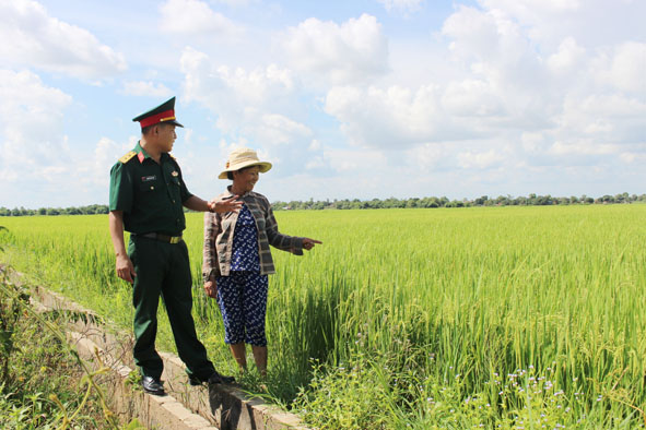 Trên đường dẫn ra hệ thống kênh mương ở địa bàn xã Ea Lê do cán bộ, chiến sĩ Ban Chỉ huy Quân sự (CHQS) huyện Ea Súp xây dựng, chúng tôi gặp bà Nguyễn Thị Kim Thu (thôn 8) đi thăm lúa, bà phấn khởi ngắm ruộng lúa đang trổ đòng: “Nhờ có bộ đội làm hệ thống kênh mương này nên tha hồ nước tưới, lúa mới tốt tươi như vậy, hy vọng sẽ cho năng suất cao”.