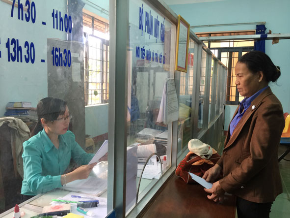 | Người dân đến làm thủ tục, giấy tờ tại bộ phận một cửa xã Quảng Hiệp. |