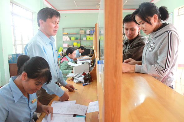 | Cán bộ Bộ phận tiếp nhận và trả kết quả UBND xã Cư Ni giải quyết hồ sơ thủ tục hành chính cho người dân. |