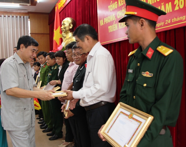 Đồng chí Y Biêr Niê trao Giấy khen của Ban Nội chính Tỉnh ủy tặng các cá nhân có thành tích xất sắc trong công tác Nội chính và phòng chống tham nhũng năm 2017