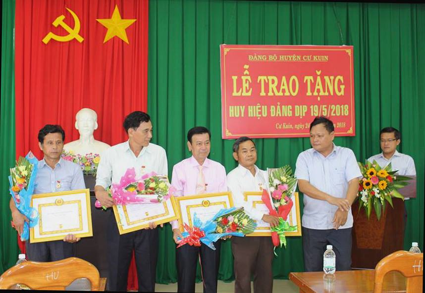 Đảng bộ huyện Cư Kuin vừa tổ chức Lễ trao tặng Huy hiệu Đảng dịp 19-5- 2018 cho 20 đảng viên tròn 70, 55, 50, 45 và 30 năm tuổi Đảng cho các đảng viên trên địa bàn huyện.