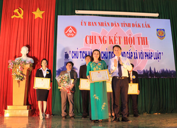 | Chị Nguyễn Thị Linh, Phó Chủ tịch UBND xã Krông Jing (huyện M'Đrắk) được trao giải Nhất tại Hội thi “Chủ tịch, Phó Chủ tịch UBND xã với pháp luật” tỉnh năm 2016. Ảnh: D. Tiến |