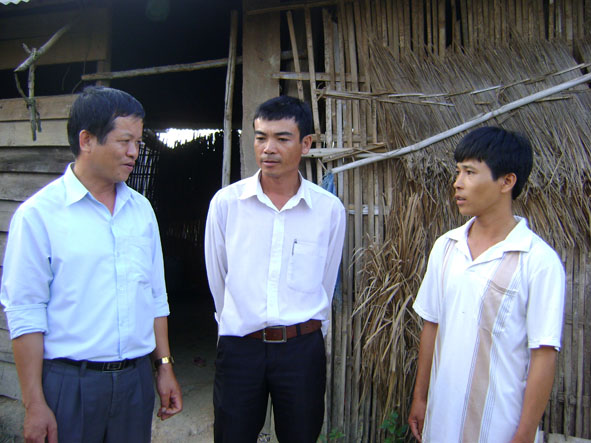 | Chi ủy buôn Vân Kiều thăm hỏi đời sống người dân trên địa bàn. |