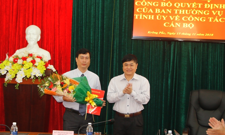 Sáng 15-11, tại Huyện ủy Krông Pắc, Thường trực Tỉnh ủy đã tổ chức công bố và trao quyết định của Ban Thường vụ Tỉnh ủy về công tác cán bộ.