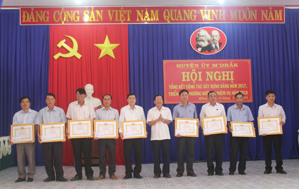 | Lãnh đạo Đảng ủy xã Cư San (thứ ba từ trái sang) nhận Giấy khen của Huyện ủy M'Đrắk về thành tích xuất sắc trong công tác phát triển đảng viên năm 2018. |