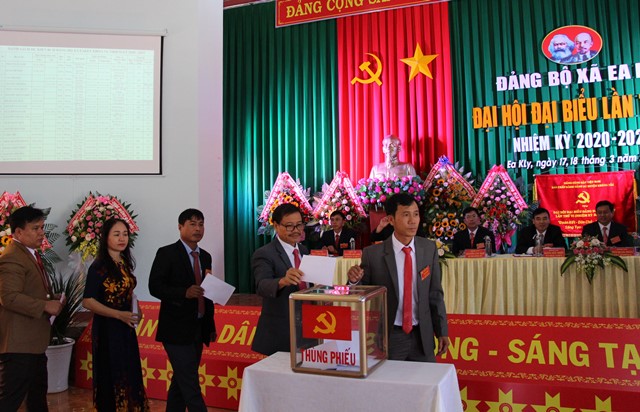 | Các đại biểu bỏ phiếu bầu cử Ban Chấp hành Đảng bộ xã |