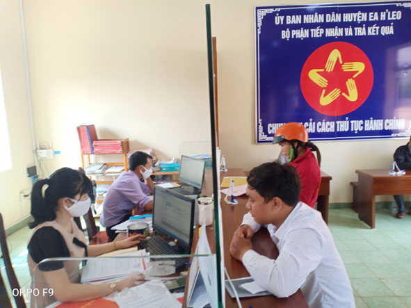 | Người dân đến giao dịch hành chính tại bộ phận Một cửa của huyện Ea H'leo. |