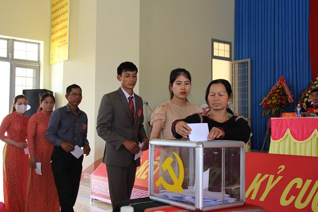| Các đại biểu bỏ phiếu bầu cử Ban Chấp hành Đảng bộ xã |