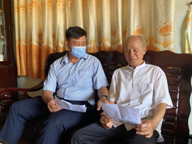 | Ông Nguyễn Xuân (bên phải) đang nghiên cứu danh sách các ứng cử viên đại biểu Quốc hội và đại biểu HĐND các cấp nhiệm kỳ 2021-2026 được xã gửi đến tận nhà. |