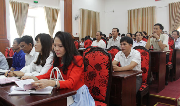 | Các đại biểu tham dự Hội nghị học tập, quán triệt Nghị quyết Đại hội XIII của Đảng do Ban Thường vụ Huyện ủy tổ chức ngày 28-4. |