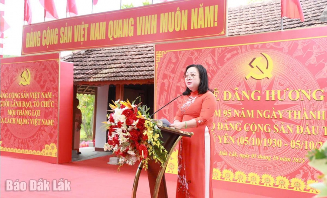 Đọc diễn văn tại lễ kỷ niệm, đồng chí Cao Thị Hòa An, Phó Bí thư thường trực Tỉnh ủy, Chủ tịch HĐND tỉnh, nêu rõ: Ngày 3/2/1930, Đảng Cộng sản Việt Nam ra đời, đánh dấu một bước ngoặt lịch sử trọng đại trong sự nghiệp đấu tranh giải phóng dân tộc của nhân dân ta. Chỉ 8 tháng sau khi Đảng Cộng sản Việt Nam được thành lập, ngày 5/10/1930, Chi bộ Đảng Cộng sản đầu tiên ở Phú Yên đã ra đời tại xóm Đồng Bé, thôn Phước Long, xã Xuân Long, huyện Đồng Xuân, tỉnh Phú Yên (nay thuộc thôn Long Bình, xã Đồng Xuân, tỉnh Đắk Lắk).