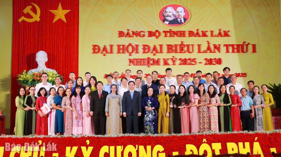 Tập thể Ban Tuyên giáo và Dân vận Tỉnh ủy chụp ảnh lưu niệm với các đồng chí Thường trực Tỉnh ủy tại Đại hội Đảng bộ tỉnh lần thứ I, nhiệm kỳ 2025-2030. Ảnh: Ngọc Thắng |