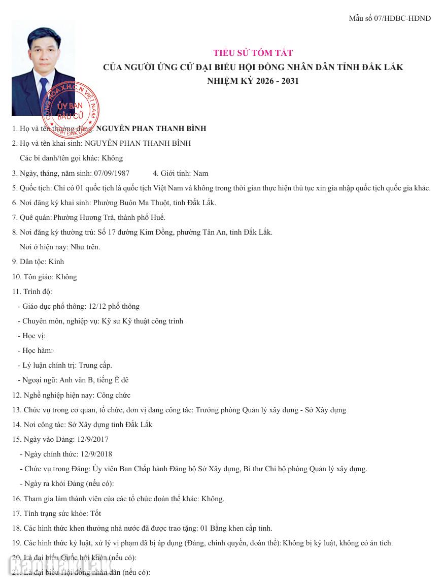 Đơn vị bầu cử số 23 gồm phường Buôn Ma Thuột. Tổng số ứng cử viên đại biểu HĐND tỉnh tại đơn vị bầu cử số 23 có 7 người; số đại biểu được bầu là 4 người.