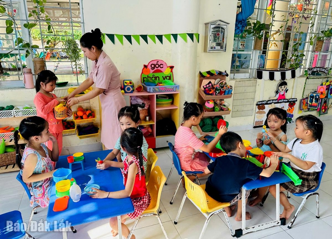 | Hạnh phúc trong nghề dạy trẻ của cô Nguyễn Thị Mỹ Linh, giáo viên Trường Mầm non An Dân (xã Tuy An Bắc) là khoảnh khắc nhìn các con thay đổi từng ngày. Ảnh: Xuân Nữ |