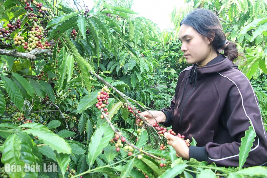 Tương tự, gia đình anh Hoàng Văn Duẩn (dân tộc Tày) từ tỉnh Cao Bằng vào buôn Plôm sinh sống từ năm 2006. Những ngày đầu, gia đình anh Duẩn gặp không ít khó khăn do thiếu vốn sản xuất. Năm 2016, gia đình anh vay 50 triệu đồng từ nguồn vốn hộ nghèo để trồng cà phê, cây ăn trái, chăn nuôi gà, vịt. Giờ đây, với 2 ha cà phê, sầu riêng mỗi năm mang lại thu nhập cho gia đình anh hàng trăm triệu đồng.
