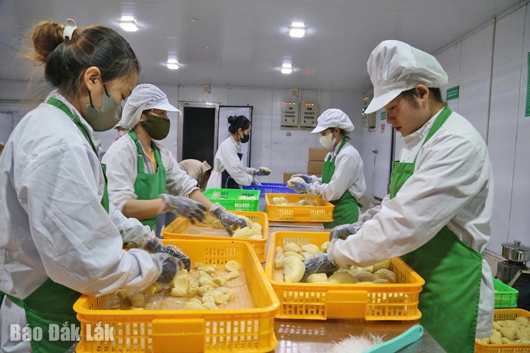 | Chế biến sầu riêng tại một cơ sở công nghiệp nông thôn ở xã Krông Pắc. |