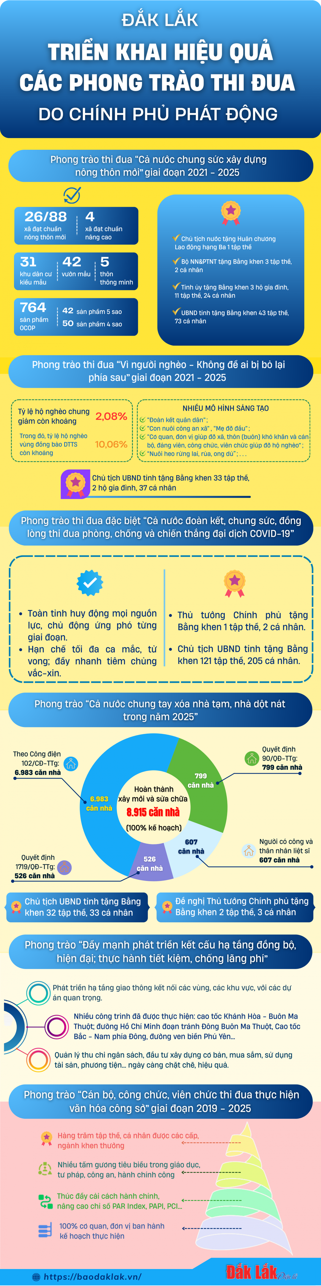 (Infographic) Đắk Lắk triển khai hiệu quả các phong trào thi đua do Chính phủ phát động