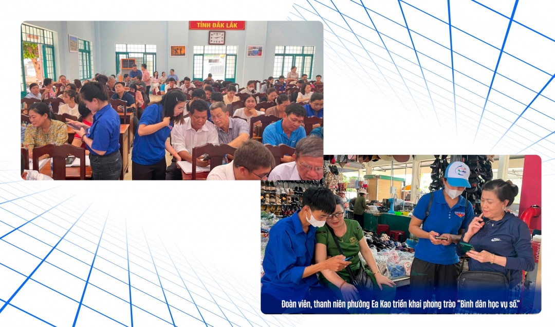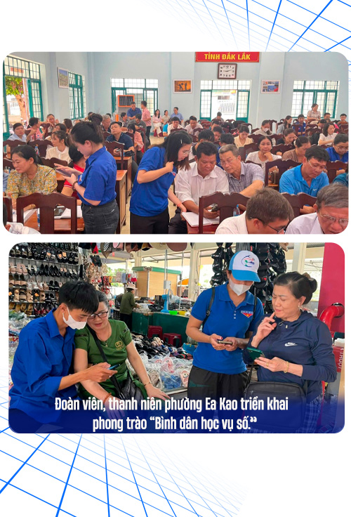 Không dừng lại ở đó, Đoàn phường còn phối hợp với UBND phường triển khai phong trào “Bình dân học vụ số”, tổ chức 8 buổi tuyên truyền, 3 đợt tập huấn kỹ năng số, thu hút hơn 1.200 lượt người tham gia. Tại các chợ Ea Kao và Ea Tam, hoạt động tuyên truyền đã tiếp cận hơn 750 người dân, giúp họ biết cách sử dụng mã QR trong thanh toán và khai thác tiện ích của ứng dụng “Đắk Lắk số” để tra cứu thông tin, phản ánh, kiến nghị.
