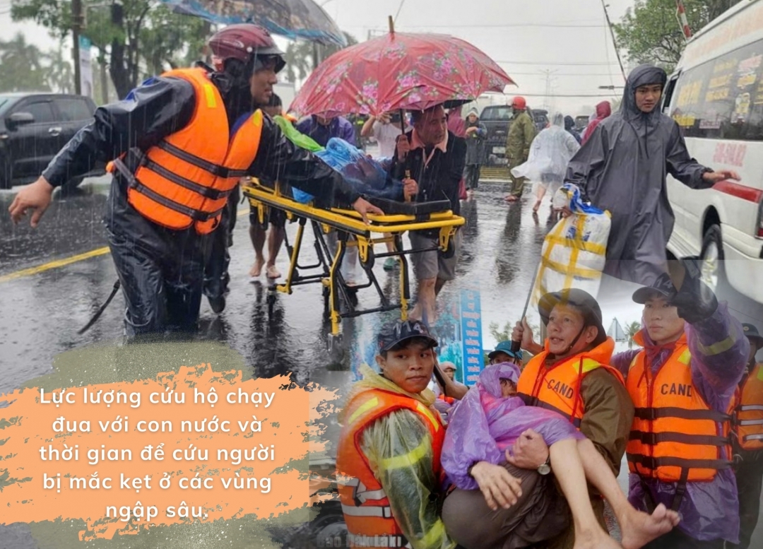 Bất chấp nguy hiểm, các lực lượng vẫn chia nhau từng mũi, hướng vào những điểm ngập sâu nhất. Hai sản phụ được đưa đến bệnh viện an toàn. Hai cụ già được cõng qua dòng nước xiết đến trụ sở UBND phường để trú tránh. Mỗi cuộc giải cứu thành công là một khoảnh khắc vỡ òa.