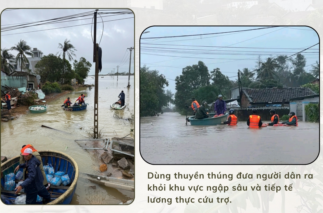 Sau hai ngày liên tục quay vòng giữa vùng ngập, nhóm đã đưa được khoảng 300 người dân đến nơi an toàn. Nhưng nhiệm vụ chưa dừng lại. Khi toàn bộ người dân đã được sơ tán, đội cứu hộ tiếp tục đảm nhận việc mang mì tôm, nước uống, thuốc men đến những khu vực ngập sâu, bảo đảm không ai bị đói, không gia đình nào bị bỏ lại phía sau. Ông Luân bộc bạch: “Chúng tôi là dân biển, ai cũng quen điều khiển thuyền thúng. Nghe địa phương kêu gọi là lên đường ngay. Lúc ấy, chỉ nghĩ làm sao đưa được càng nhiều người ra khỏi vùng nguy hiểm càng tốt”.