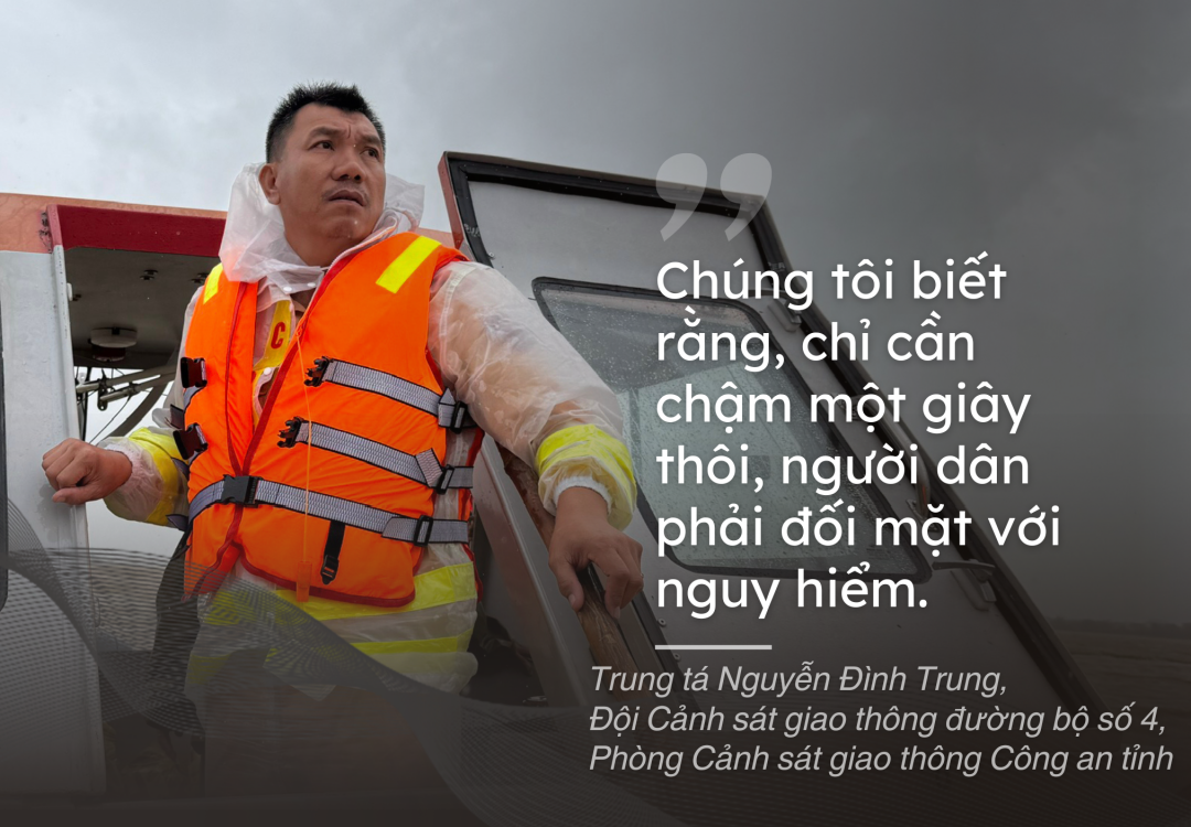 Mỗi chuyến đi là một cuộc “chạy đua với lũ”, nơi sai sót nhỏ nhất cũng có thể đổi bằng tính mạng. Nhưng trên gương mặt rám nắng của người lính cứu hộ ấy, tuyệt nhiên không có sự do dự. Họ làm việc gần như không nghỉ, ướt sũng từ sáng đến đêm, chỉ với một mong muốn giản dị mà thiêng liêng: Không một ai bị bỏ lại phía sau. Trong tâm điểm của hiểm nguy, tinh thần trách nhiệm và sự quả cảm của những người lính như Trung tá Trung đã trở thành ánh sáng ấm áp giữa dòng lũ lạnh lẽo.