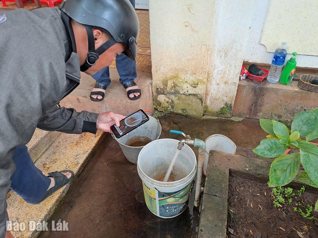 Nhân viên Công ty Cổ phần Cấp nước Đắk Lắk kiểm tra chất lượng nước của khách hàng. |