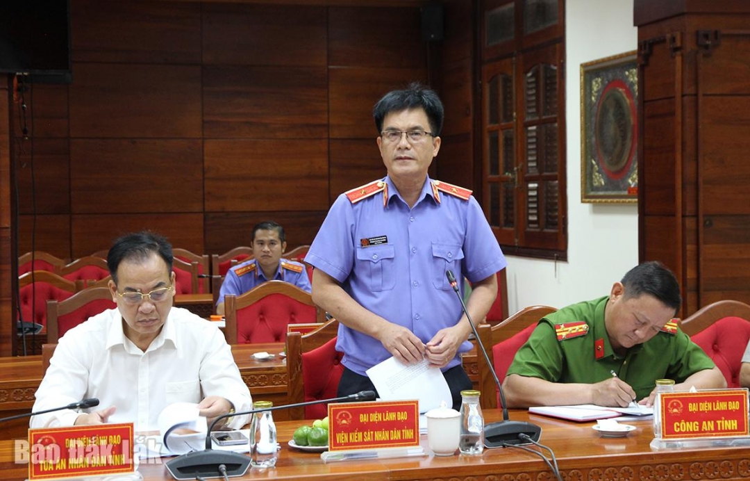 | Viện trưởng Viện KSND tỉnh Phạm Trung Thuận thông tin tình hình triển khai thực hiện Nghị quyết 205 với đoàn khảo sát của Ủy ban Pháp luật và Tư pháp của Quốc hội. |