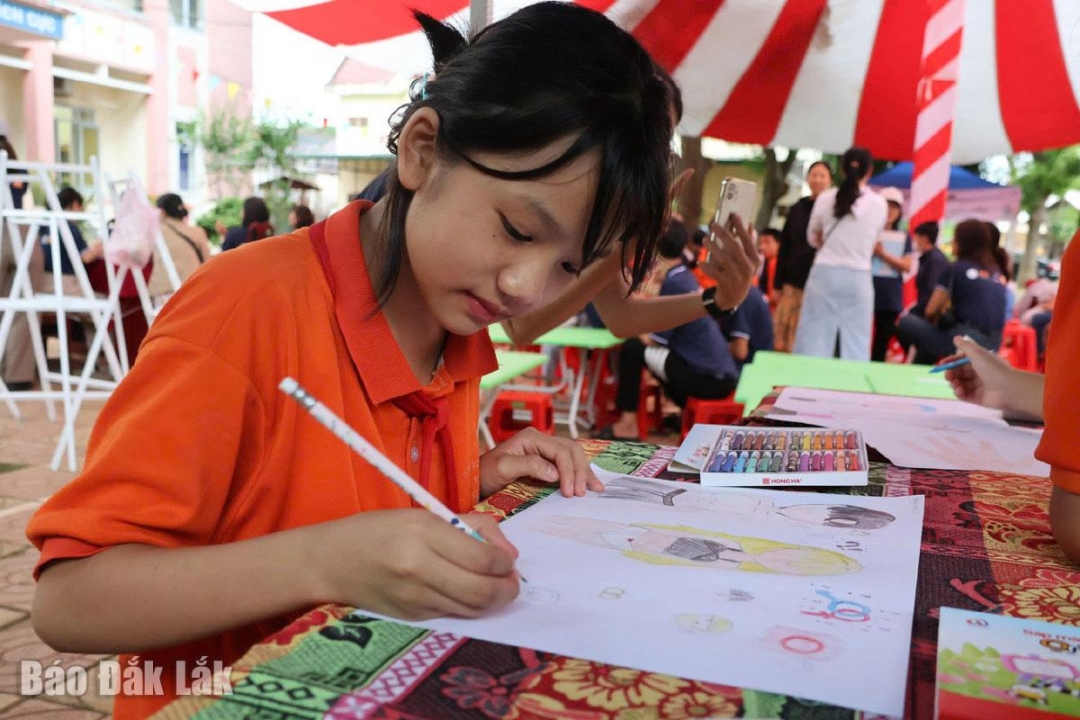 Học sinh Trung tâm Hỗ trợ phát triển giáo dục hòa nhập trẻ khuyết tật tỉnh Đắk Lắk vẽ tranh về chủ đề giáo dục giới tính. |