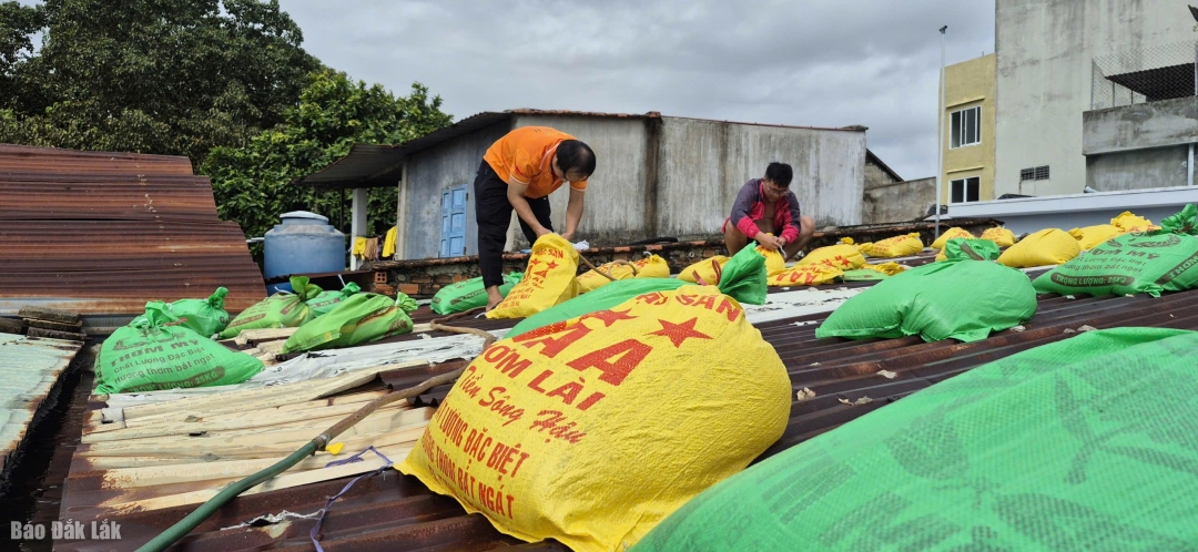 | Ngư dân khu vực phía Đông tỉnh Đắk Lắk kiểm tra lồng bè nuôi trồng thủy sản trước thời điểm bão đổ bộ. Ảnh: Tuyết Hương |
