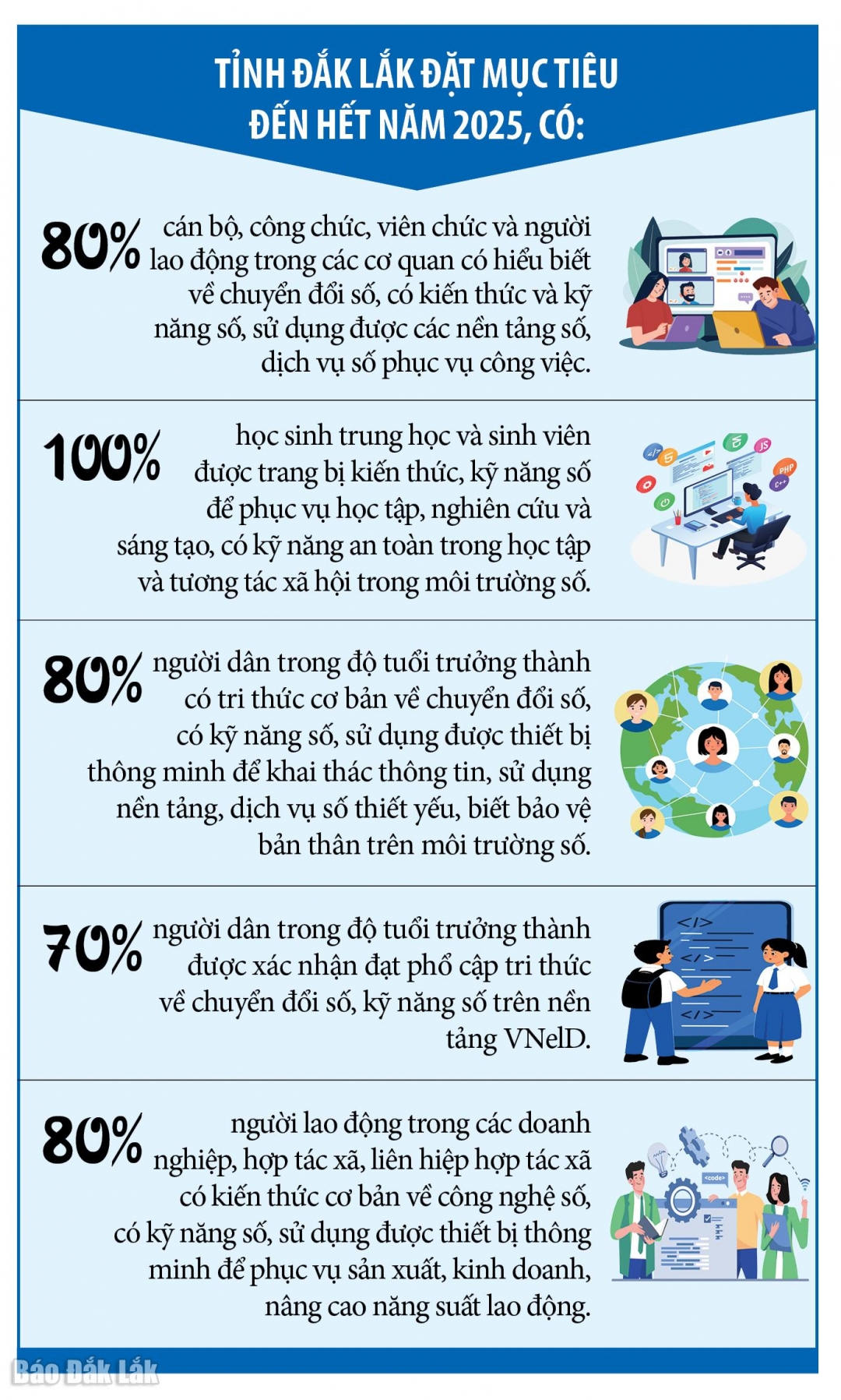 Mặc dù tỷ lệ sử dụng internet và công nghệ thông tin đang gia tăng mạnh ở các địa phương, nhưng khoảng cách trong tiếp cận và sử dụng công nghệ vẫn tồn tại. Giữa kỷ nguyên mà mọi lĩnh vực của đời sống đều đang được số hóa và giải quyết bằng giải pháp công nghệ thì những người dân thiếu kỹ năng số sẽ gặp nhiều khó khăn. Phong trào “100 ngày cao điểm bình dân học vụ số” triển khai trên địa bàn tỉnh với kỳ vọng không ai bị bỏ lại phía sau trong kỷ nguyên số.