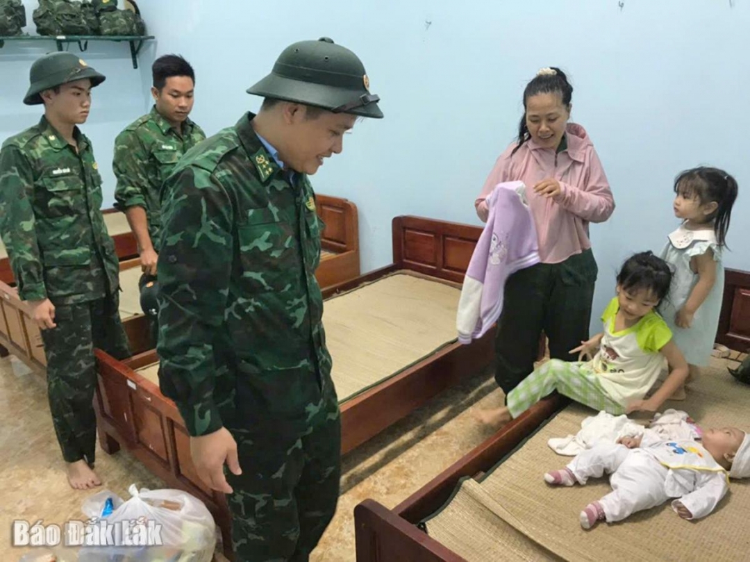 | Đồn Biên phòng Hòa Hiệp Nam đón và hỗ trợ người dân vào trú tránh bão. |