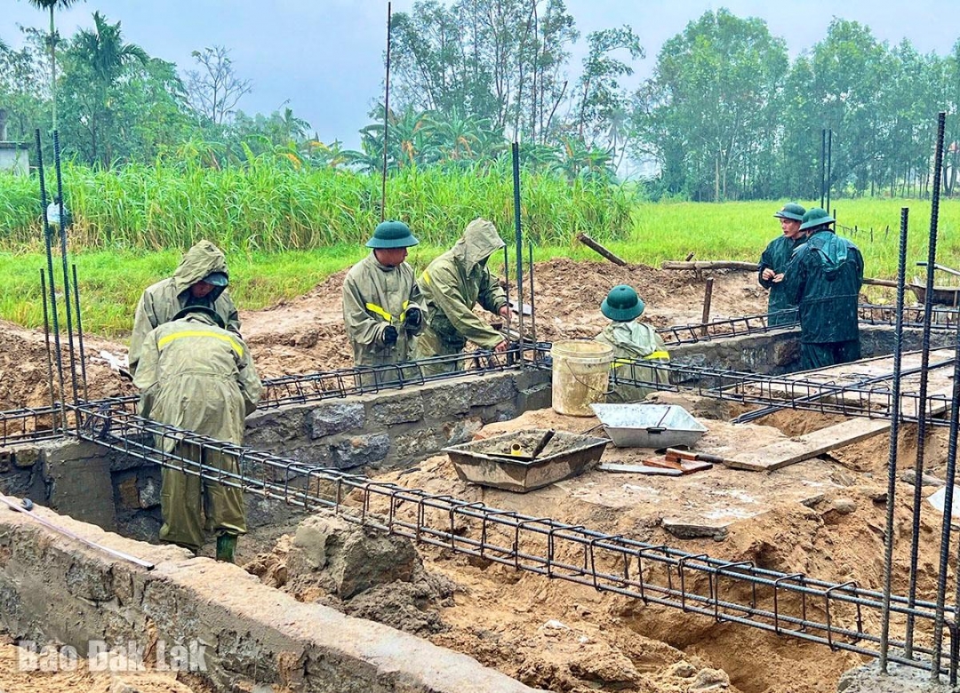 Theo đó, Đắk Lắk xây dựng 650 căn nhà mới với chi phí tối thiểu 170 triệu đồng/căn từ nguồn kinh phí hỗ trợ của Nhà nước; lực lượng quân đội làm nòng cốt, phối hợp cùng chính quyền địa phương xây dựng các căn nhà vững chắc, an toàn, đáp ứng yêu cầu sinh hoạt và phòng chống thiên tai.