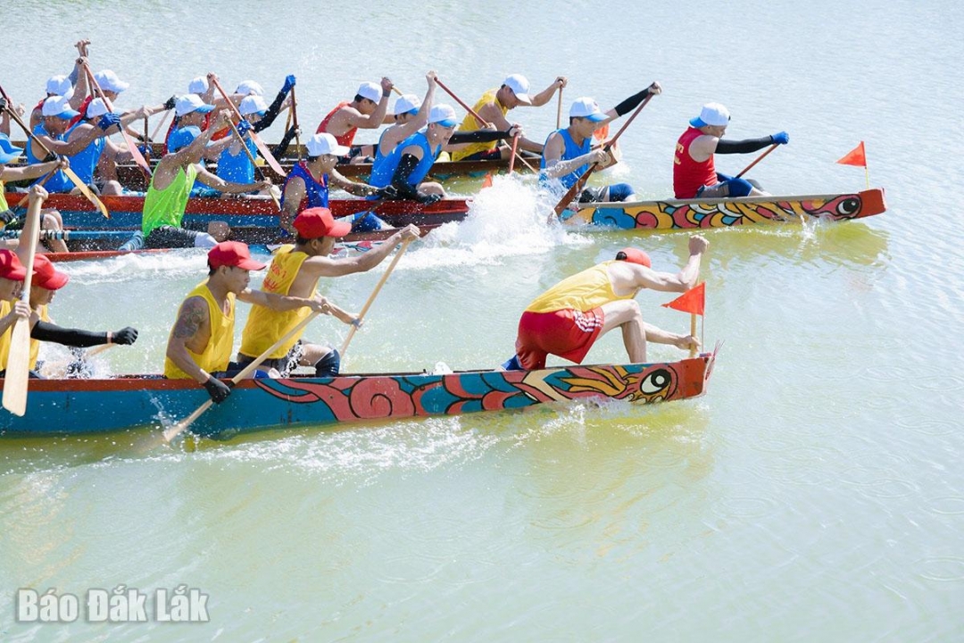 | Đua thuyền trên dòng sông Kiến Giang. |