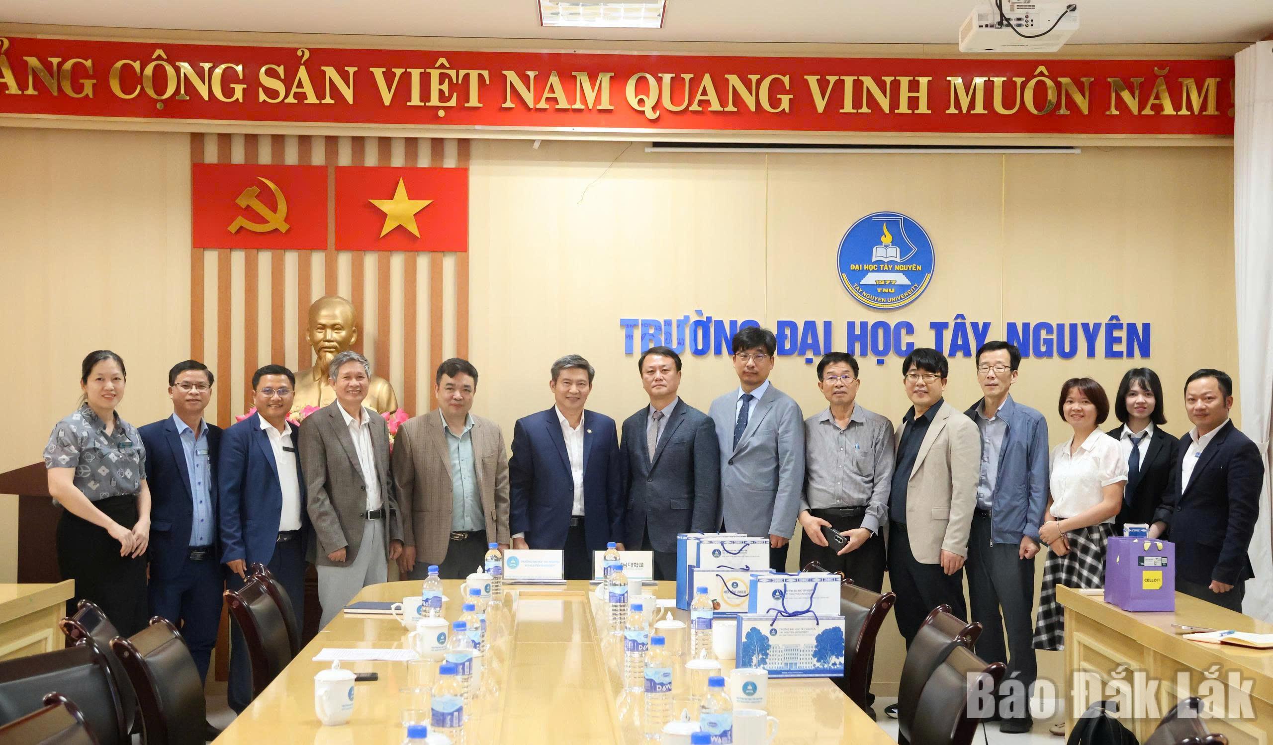 | Lãnh đạo Trường Đại học Tây Nguyên làm việc với đoàn công tác Trường Đại học Quốc gia Chonnam (CNU - Hàn Quốc). |