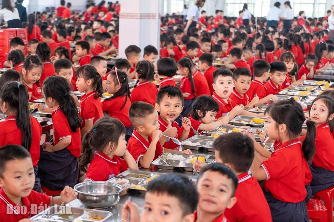 Bữa ăn bán trú của học sinh Trường Tiểu học, THCS và THPT Victory (phường Buôn Ma Thuột). |