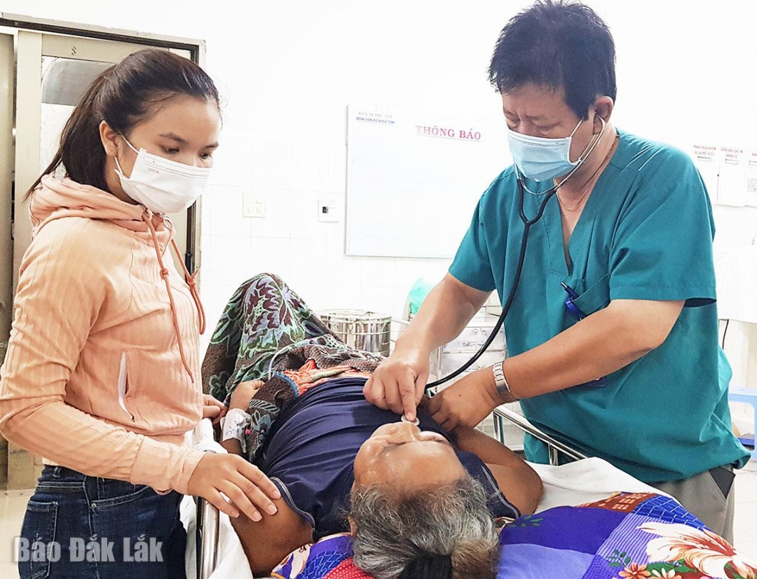 Bác sĩ Châu Khắc Toàn khám một bệnh nhân vừa được chuyển đến Khoa Hồi sức tích cực - Chống độc, Bệnh viện Đa khoa Phú Yên. |